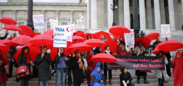 – Questa sono io, megafono alla mano, durante la protesta che abbiamo organizzato davanti al Parlamento austriaco a Vienna insieme agli attivisti della nostra rete transnazionale per i diritti delle “lavoratrici del sesso”. (E...